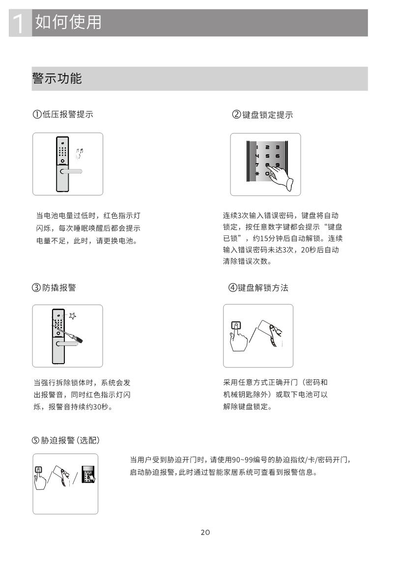 在使用多瑪智能鎖前,請您務(wù)必仔細(xì)閱讀使用說明書,進(jìn)行多瑪智能鎖調(diào)試。 您能成為我們的用戶,是我們莫?的榮幸。為了使您盡快掌握多瑪智能鎖的使用方法,我們特別為您編寫了說明書。我們對產(chǎn)品說明書的編排力求全面簡潔。從中您可以獲得有關(guān)智能鎖基本使用方法及其它的知識。我們強(qiáng)烈建議您在使?本產(chǎn)品之前,務(wù)必請您仔細(xì)閱讀,這會有助于您更好地使?多瑪智能鎖。如果您未按說明書的要求操作智能鎖?由此引起的任何損失,根據(jù)相關(guān)規(guī)定本公司將不承擔(dān)責(zé)任。使用說明書僅適用于書中所介紹的本公司智能鎖同型號產(chǎn)品的使用方法和使用條件及環(huán)境要求的說明,不具體表明產(chǎn)品軟硬件的實(shí)際配置和界面,實(shí)際配置請以您所購買的產(chǎn)品及裝箱清單為準(zhǔn)。