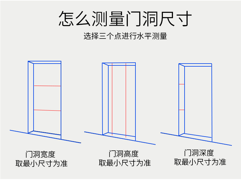 現(xiàn)場測量方法是依次對門洞的上中下3處測量寬度及高度,如果有誤差,以最窄處為準(zhǔn),但誤差不得超過20㎜。對于誤差大于20毫米的墻洞,安裝銅門前需要用水泥砂漿或石灰修補。