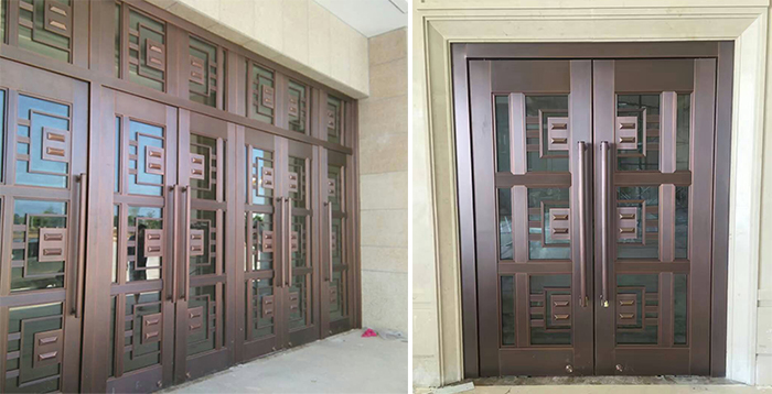 該項(xiàng)目為特變電工銅門(mén)工程項(xiàng)目,該工程的門(mén)洞尺寸為:(寬*高)6200mm*3852mm,設(shè)計(jì)的通行高度為2873mm,所選用的銅門(mén)是足1.0厚的洛陽(yáng)優(yōu)質(zhì)紫銅板,門(mén)體內(nèi)置鍍鋅方管和pvc板,外配有地彈簧和機(jī)械鎖等五金配件,并于2016年6月完工,至今運(yùn)行狀態(tài)穩(wěn)定。